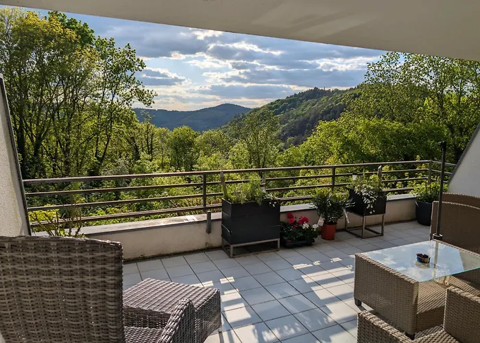 Апартаменты Panorama Eifel View Нидегген с террасой расположены в 5 минутах ходьбы от Замкового музея. Гости апартаментов могут пользоваться Wi-Fi, а также бесплатной чaстной парковкой.